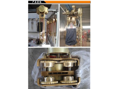 防爆手拉葫蘆,防爆滑動小車,防爆千斤頂防爆手拉葫蘆:本發明以鋁青銅、鈹青銅作為毛坯,手拉葫蘆外殼采用銅合金材料。防爆手拉葫蘆受力摩擦部位包括構成手拉葫蘆的起重輪、手鏈輪、墻板、掛鉤、齒輪、齒輪軸采用鋁青銅、鈹青銅合金材料。防爆手拉葫蘆適用于石油、化工、煉油、采氣、油品運輸、礦山作業等易燃易爆氣體場所。