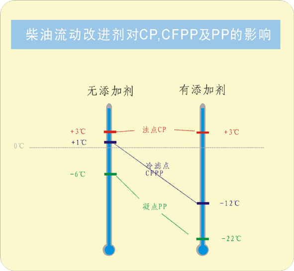 本產品對不同性質的柴油感受性不同,一般情況下冷濾點可降低10個以上。