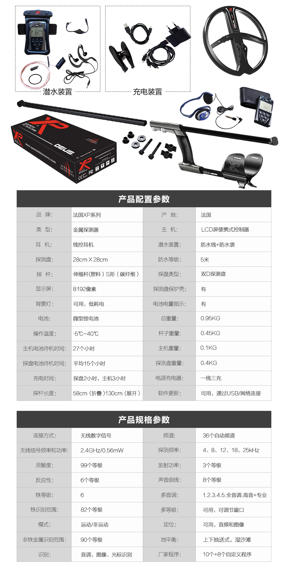 XP 地下金屬探測器是通過全球先進技術打造出來的強大、快速、輕便、簡潔的可控式數字探測器。機器自帶入門級模式以及專家模式。不管您是初學的探寶愛好者還是經驗十足的探寶愛好者,XP地下金屬探測器會讓您自己做決定是否修改機器上的設定。強大的廠家預置程序可以讓大部分的操作者立即開始探寶,而經驗十足的專業探寶人可以通過控制器界面選擇更先進的參數設置。