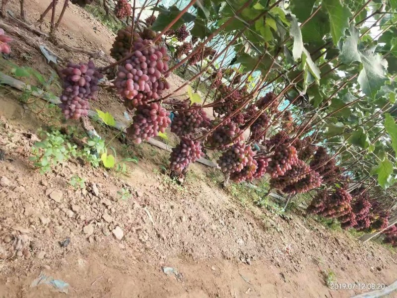 在吉林5月初萌芽,5月10展葉,6月15-19開花,8月末著色成熟,果實(shí)顏色紫紅色,單果重5克,經(jīng)膨大處理可達(dá)8克。 穗重500-1000克。可溶性固形物含量22% ,有濃厚的茉莉香味,品質(zhì)好。 枝條成熟好,在吉林零下40度無凍害(埋土10厘米防寒)抗病性強(qiáng),2005年在60多天的陰雨天氣,病害較輕,豐產(chǎn)穩(wěn)產(chǎn)。適宜大部分地區(qū)栽培。