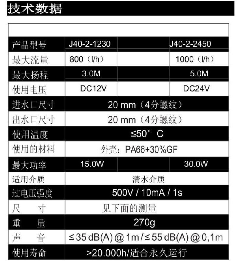7、嚴(yán)禁接入交流電壓或大于水泵本身的直流電壓,嚴(yán)禁反接正負(fù)極.