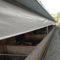 PVC涂塑布做的畜牧養(yǎng)殖場卷簾布具有防水、防霉、耐寒、耐老化、防靜電等性能;且本產(chǎn)品耐斷裂力強(qiáng)、撕裂伸長率、耐撕破力大大優(yōu)于傳統(tǒng)卷簾布(PE布、彩條布、透明薄膜);表面進(jìn)行特殊處理起防滑作用,是養(yǎng)殖行業(yè)通用的防水用布。可能有人會說PE布和彩條布或者透明薄膜也可以做呀,是的,是可以做,但是效果如何呢?這些布都比較薄,防風(fēng)防寒效果很差,是達(dá)不到保暖效果的,另外這些布容易風(fēng)化老化不耐用,增加更換頻次和成本。PVC涂塑帆布制作的雞舍卷簾布,輕便、耐用,壽命達(dá)到8~10年;防風(fēng)防水,起到防寒保暖的作用,PVC涂塑布做的卷簾布價格雖然會比PE布、彩條布做的要高一點(diǎn),但它耐用,效果也好,實(shí)際上性價比比PE布和彩條布或者透明薄膜做的卷簾布要高很多的,是各大豬場精明之選。