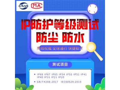 IP56檢測認證主要包括兩個檢測項目,一個是防水等級6級防水,一個是防塵等級5級防塵。