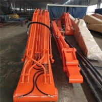 加長(zhǎng)臂分為二段式、三段式、四段式,二段式主要適用于土砂、混凝土等建筑搬運(yùn)、高速公路坡面修整及河道疏通清淤及建筑基礎(chǔ)、河道、深溝等土石方挖掘作業(yè)等;三段式、四段式主要適用于高層建筑樓體的拆解等作業(yè)等。主要的是:要根據(jù)加長(zhǎng)臂重量的需要,適當(dāng)加重機(jī)器后部配重塊的配重重量,以保持前后平衡。避免挖掘機(jī)工作中出現(xiàn)事故