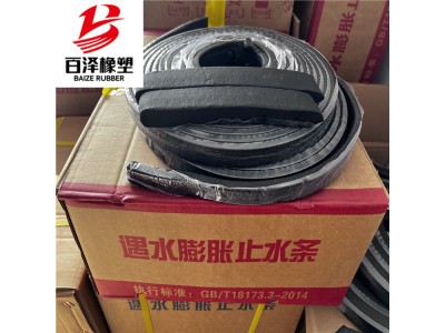 遇水膨脹止水條以特種橡膠、無機(jī)吸水材料、高粘性樹脂等十余種材料經(jīng)密煉、混煉、擠至而成而成的一種止水條產(chǎn)品,它是在國(guó)外產(chǎn)品的基礎(chǔ)上研制成功的一種斷面為四方形條狀自粘性遇水膨脹型止水條。依靠其自身的粘性直接粘貼預(yù)置在混凝土施工縫、后澆縫的界面上,二次澆注混凝土后(即被砼包裹的狀態(tài)下)。