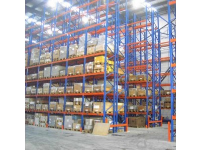 以立柱片+橫梁形式的全組裝結(jié)構(gòu),結(jié)構(gòu)簡明有效。每兩組貨架背靠背放置,每一列貨架設(shè)計一條通道(通道的寬度視選用叉車而定)。貨物存取便捷,利用率較高,適合多品種貨物的大量存儲