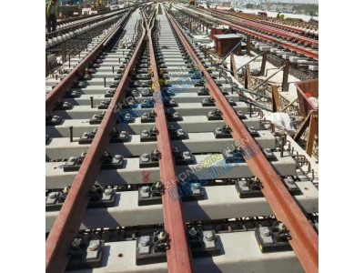 安裝豎向支撐螺桿,對軌排標高進行調整。對高速鐵路道岔軌道面積高程進行檢查可以采用水準儀,對高速鐵路道岔標高調整數值進行確定,使用豎向支撐螺桿,將道岔軌面調整至低于設計標高5mm以內,然后取出方木,當調節好岔軌后,在利用豎向調節器對道岔軌面的水平進行調整。