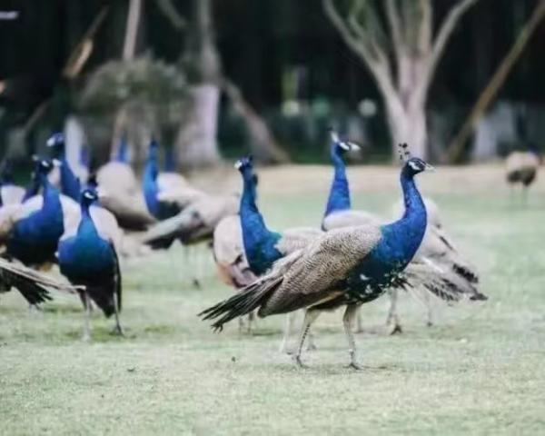 小朋友對孔雀印象很深刻,因?yàn)樗悄敲吹膬?yōu)雅迷人美麗。每年的三四月份是孔雀的求偶季,這時(shí)的雄孔雀們已經(jīng)陸續(xù)重新長出了華麗的尾上覆羽,一個(gè)個(gè)精神抖擻的尋找著自己的心儀對象,一旦發(fā)現(xiàn)心儀的那個(gè)"她",馬上就一邊展示它那五彩繽紛的尾屏,不斷抖動(dòng)著、摩擦著羽毛,發(fā)出"沙沙沙"的聲音,一邊還不停地做出各種各樣優(yōu)美的舞蹈動(dòng)作,以求得雌孔雀的芳心。孩子們看看美麗的孔雀,拍拍照,合合影,投喂投喂孔雀。