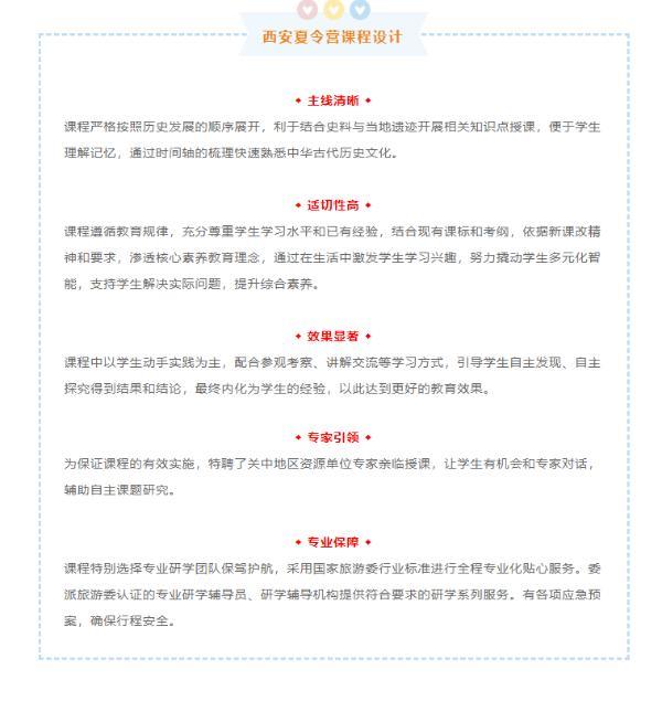 西安夏令營,帶領營員跟隨時間腳步,看中華綿延數千年的文化發展變遷,在生生不息的傳承和發揚中建立強大文化自信……把對西安的美好印象和滿滿收獲,都收拾進自己的行囊。將*美的西安,留在記憶里。