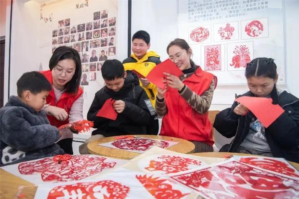 在民俗藝術博物院,學習剪紙技藝,了解剪紙的起源與流變、民俗文化內涵;老師講解剪紙的基本類型、剪紙方法,現場示范"折疊剪紙"的過程,講解剪紙的技巧。