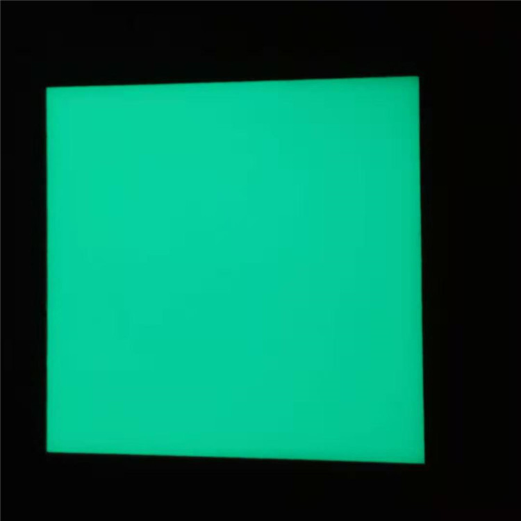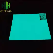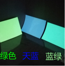 夜光板是用高亮夜光粉與PVC樹脂材料混合后制作完成,是種硬質的發光板材,可以切割成不同的規格,可以在表面進行絲網印刷,制作成各種蓄光自發光導向標示系統。目前這種板主要出口到歐美等市場,制作的消防標示符合歐盟標準。材料具有一定的阻燃性能。