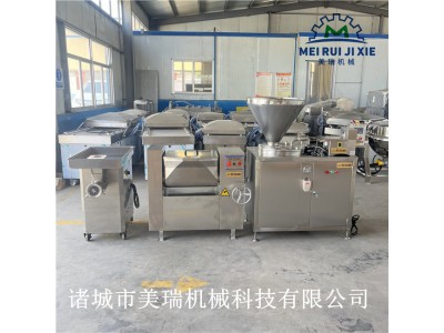 小型灌腸生產線 紅腸加工成套設備 風干腸加工流水線再后來自動化程度高了就有了電動的,就是人工來投放物料后自動灌腸的一個功能的,但是所有的腸類都需要人工來套腸衣的,也可以配備自動套腸衣器來使用,再然后就有了絞肉式灌腸機、泵浦灌腸機、液壓灌腸機、氣動定量紐結灌腸機和真空灌腸機等等的,自動化程度越來越高了,越來越節省人工的操作,接下來就有很多的選擇了。