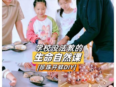 不過一下子開出價值不菲的珍珠,也是很有可能的哦~開蚌看似簡單,卻是有技巧的!孩子們已經按捺不住激動的心,迫不及待想要看看蚌殼里的珍珠了挑蚌、開蚌,一氣呵成,將精心挑選出的珍珠.讓師傅打磨、鉆孔短短十多分鐘,一顆顆晶瑩圓潤的珍珠就誕生啦!珠寶設計師的童趣夢想被點燃,孩子們自主設計一款精美的珍珠飾品.經過洗珠、拋光、鉆孔、設計組合耐心的穿孔搭配.一顆顆珍珠變成了一件件精美的裝飾品,
