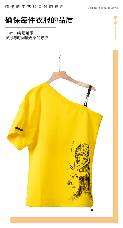 (名稱(chēng)):短袖T恤女裝純棉甜美春夏新款露單肩寬松百搭個(gè)性休閑