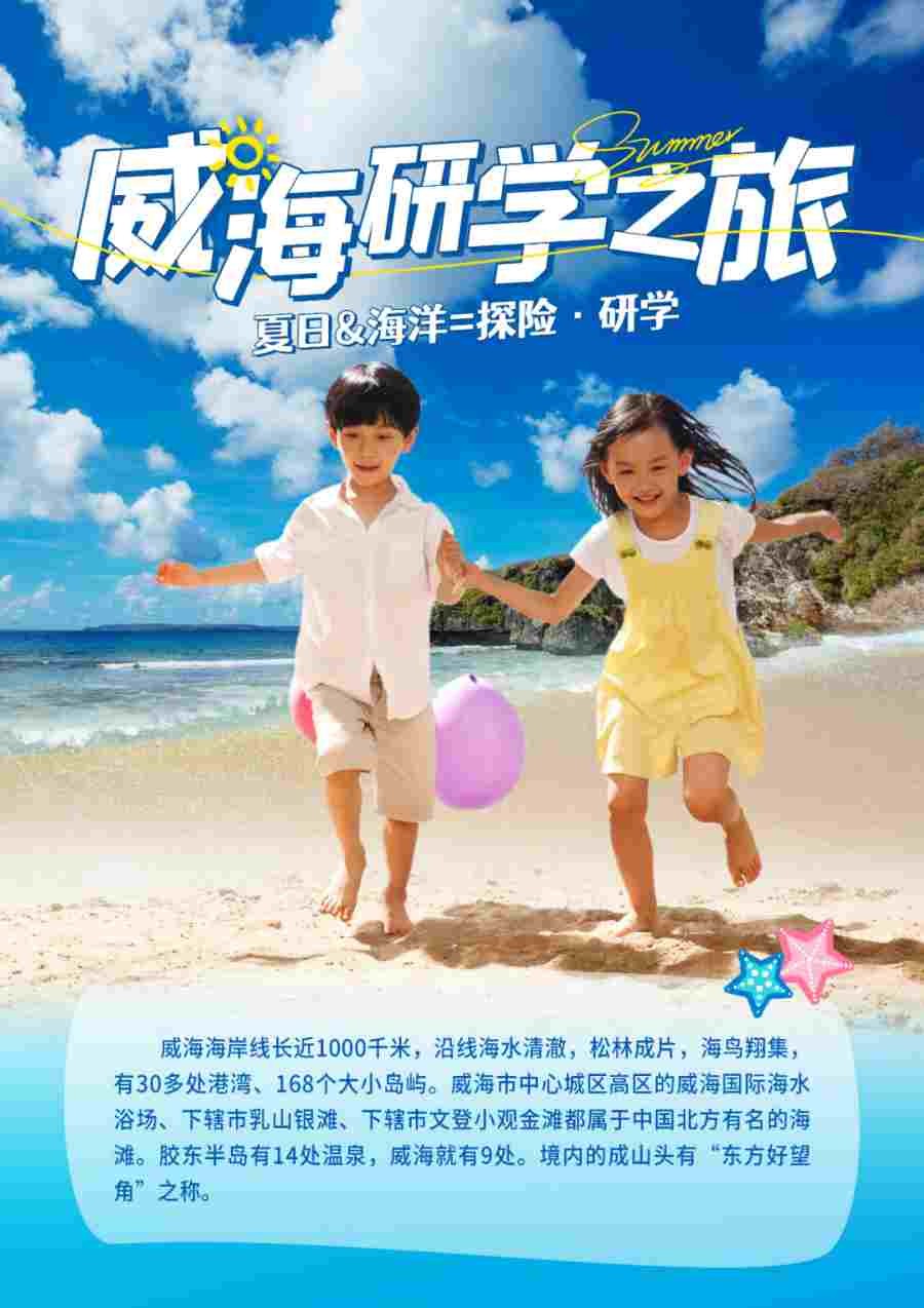 中國z美的八大海岸之一——威海,z適合人類居住的城市。它有著獨特魅力和豐富資源,我想孩子們對這一段經歷將回味無窮,烙印在心里!