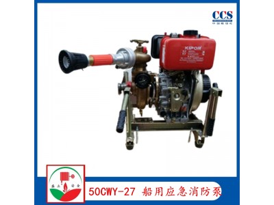 船用應急消防泵分類:50CWY-27固定手啟動、50CWY-27固定手啟動+電啟動、50CWY-27移動手啟動、50CWY-27移動手啟動+電啟動、65CWY-40固定手啟動、65CWY-40固定手啟動+電啟動、65CWY-40移動手啟動、65CWY-40移動手啟動+電啟動、國際船舶需要加裝防爆油管和光聲報警器。