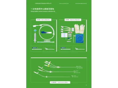 產(chǎn)品基本配置:導(dǎo)管、導(dǎo)引導(dǎo)絲、Y型穿刺針或穿刺針+藍(lán)空針、擴(kuò)張器、單通道延長(zhǎng)管、多通道延長(zhǎng)管、三通閥、肝素帽、破皮刀。