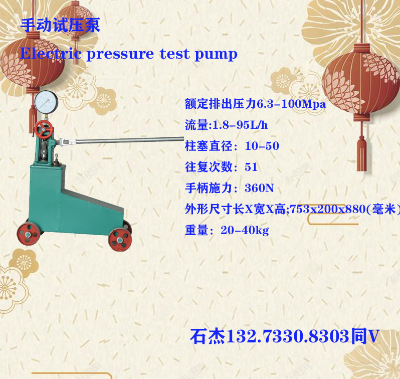 但現有試驗裝置需要工作人員在試驗區域通過指針式壓力表記錄試驗數據、關注設備的異常響聲,工作人員人身安全無法得到保證,國內曾發生過壓力容器的低壓封頭突然崩裂,擊中觀察壓力表的名工人的事故。實用新型內容智能型電動試壓泵新型的目的是解決現有技術中的問題,提供一種無需工作人員在試驗現場作業的智能電動試壓泵。