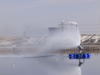 4、漂浮式蒸發器:設備安裝于浮船上,放置于蒸發塘水面上,進行霧化蒸發。