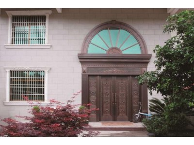 銅門通常配備防盜鎖、保險栓等,具備很好的防盜性能。門外看不到鎖芯,配有內置鎖,因此安全性較高。